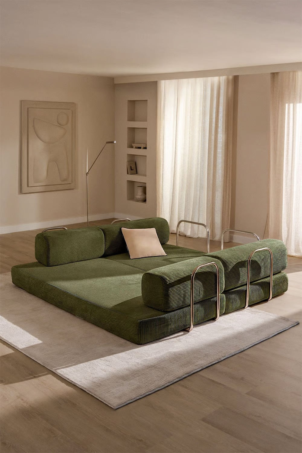 Le canapé-lit Igone associe une esthétique moderne à la douceur caractéristique du velours côtelé. Son rembourrage équilibré offre un confort agréable aussi bien en position assise qu’en position allongée, tout en conservant sa forme et son maintien au fil du temps.